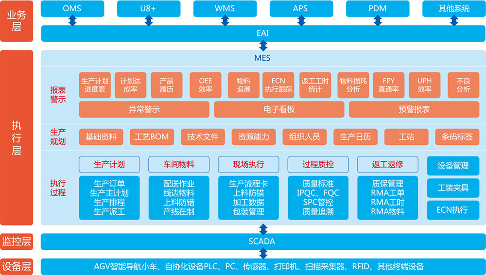 | 兼容主流的 CNC、PLC、种种智能终端 | 围绕生产焦点,,,,,,,,收罗、传输、存储、管理工业大数据 | 以MES系统为焦点,,,,,,,,实现智能排产,,,,,,,,提高职员、装备、仓储效率 |